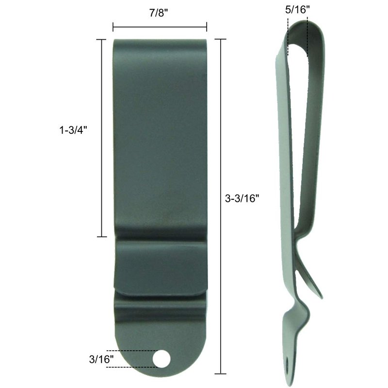 - SPECS - Width: 7/8" (0.875") Belt Size: 1.75" Overall Length: 3-3/16" Hole Diameter: 3/16"