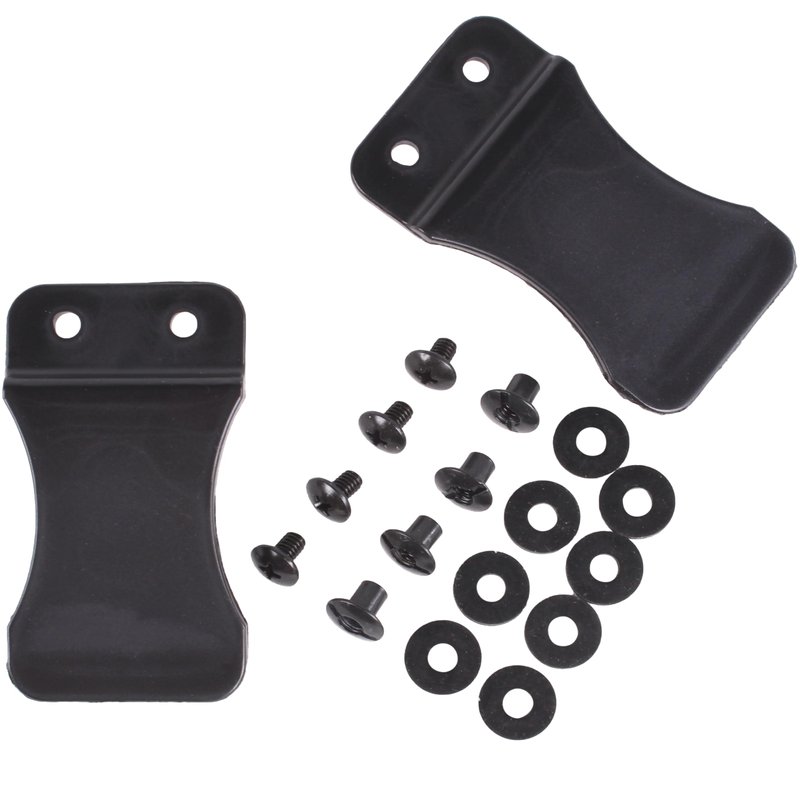 - HARDWARE KIT - Includes all the necessary hardware to fit these clips on most gun holster or knife sheaths, Every clip includes, 2 pcs - 1/4" Black Oxide Machine Screws Standard Head , 2 pcs 1/4" Binding posts, and 4 pcs EPDM Rubber washer/spacers with each clip.