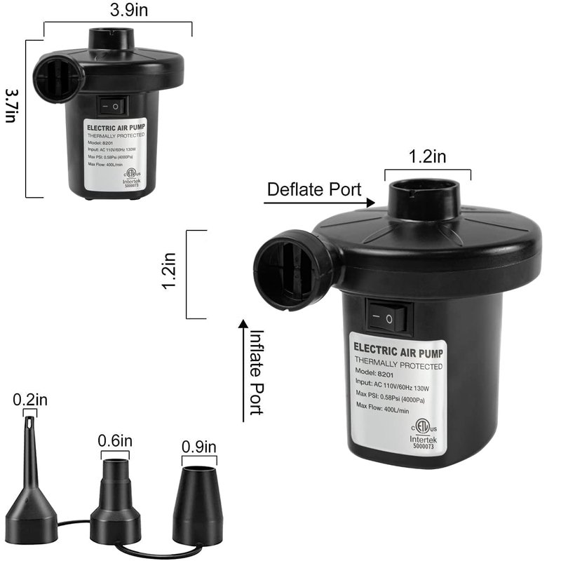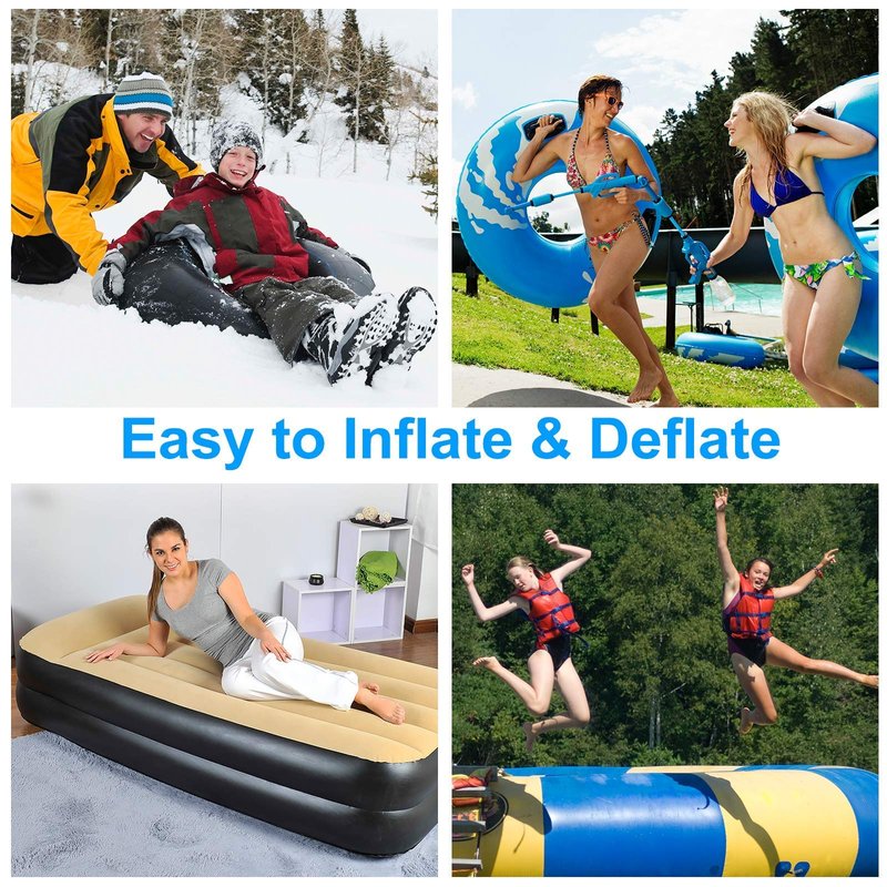 - ●FAST INFLATION & DEFLATION● This electric air pump's pressure: 0.5PSI / 3500Pa, is over 25 times faster than manual air pumps. The ordinary air mattresses, swimming ring, inflatable toys can be filled within few seconds. Makes inflation & deflation easy and efficient, save more time for fun.