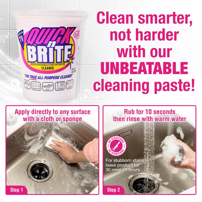 - True all purpose cleaner - Quick N Brite All Purpose Cleaning Paste is the ultimate cleaning solution for various surfaces, from barbecue grills to carpets and everything in between. This power paste effectively removes tough stains and grease.