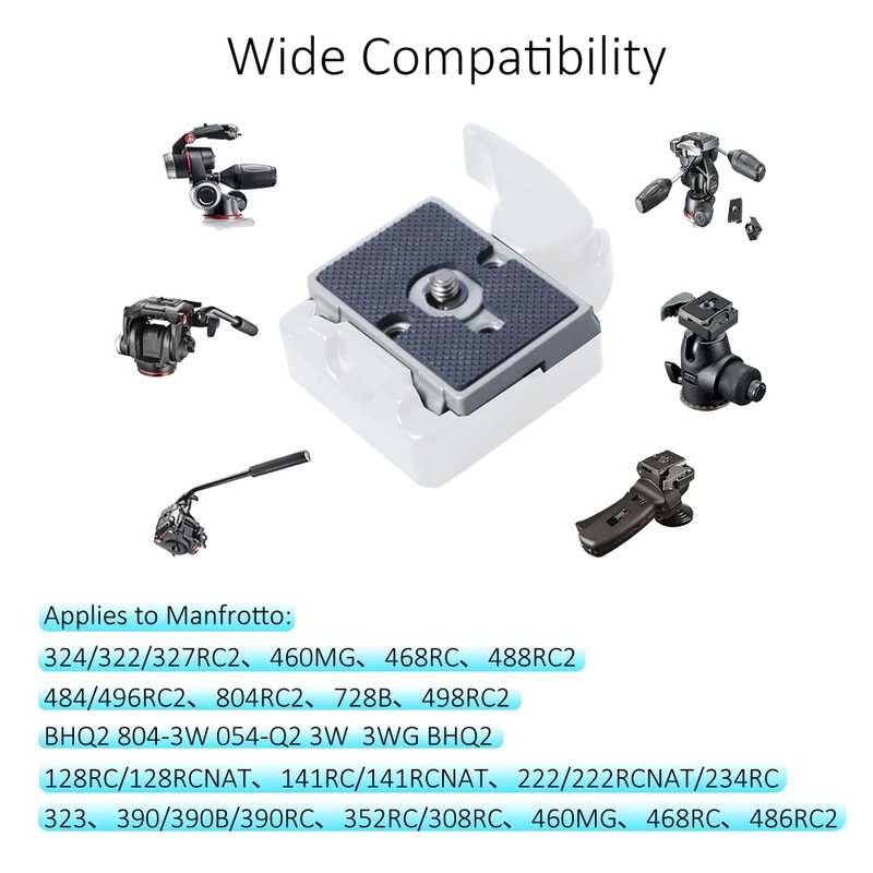 - EXCELLENT COMPATIBILITY: The quick release plate for manfrotto is compatible with MFTO tripod head with RC2 Rapid Connect System, including 322RC2, 468MGRC2, XPRO, 498RC2, 496RC2, 494RC2, MH804-3W, 468MGRC2, 234RC, 700RC2, and more .
