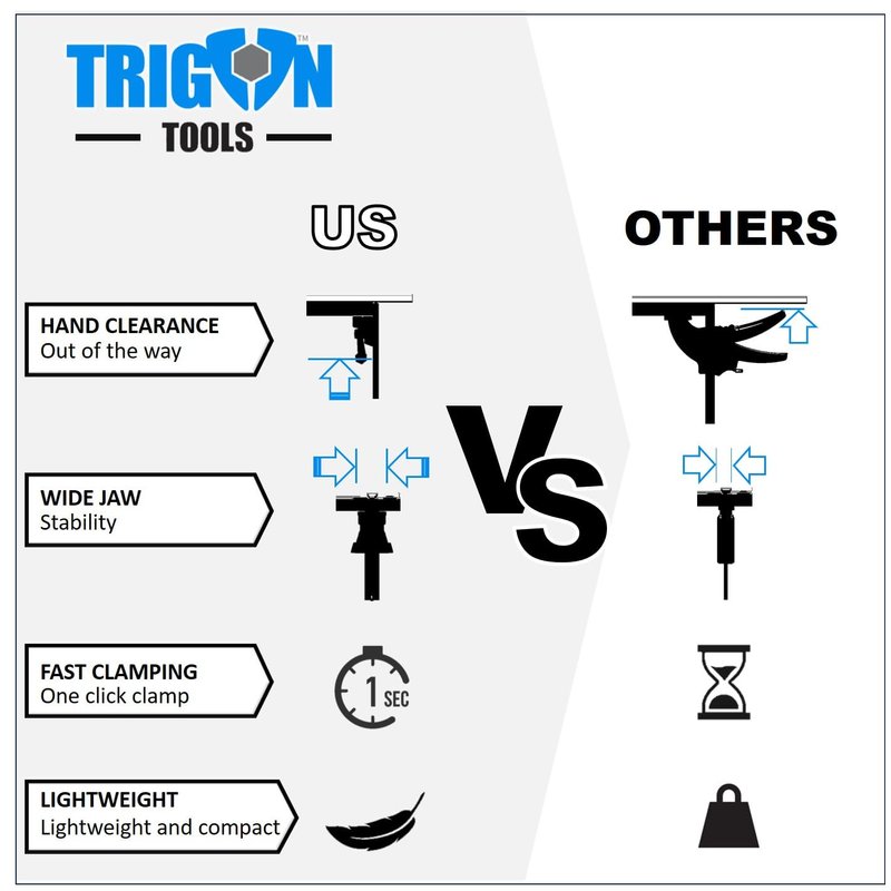 - One second clamping- clamp smoothly slides to position and clamp with one trigger pressing, quick release clamp, auto adjust up to 5'' thickness. use as guide rail clamp for track saw guide, add these clamps to toyr track saw kit