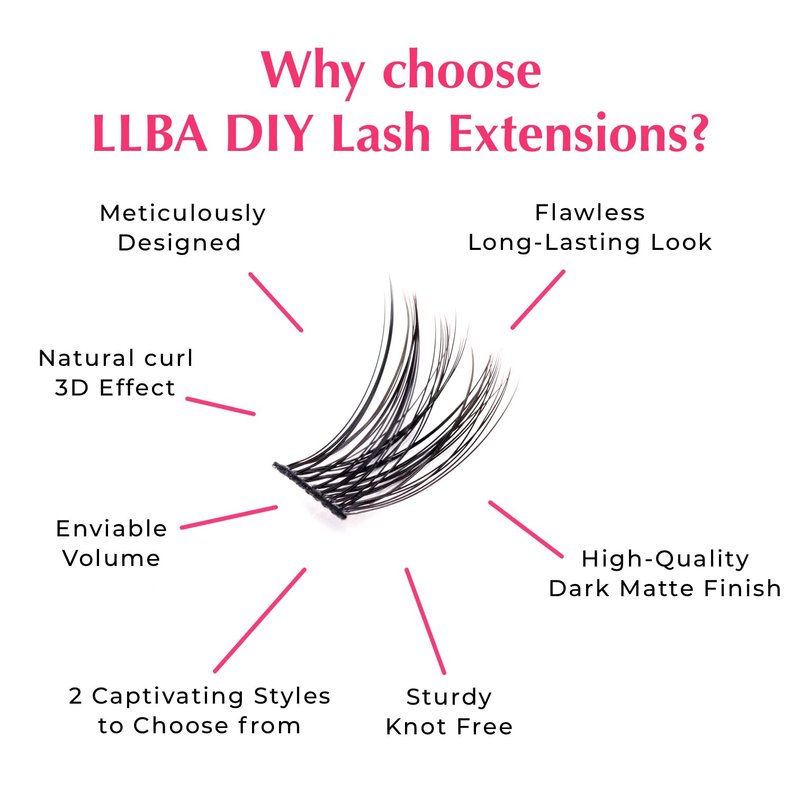 - ✅ VERSATILE BEAUTY: Our DIY lash extensions provide the finishing touch to your overall appearance, allowing you to feel glamorous and ready to conquer any party or special occasion. Say goodbye to smudged mascara or false lashes that may come loose during your event. LLBA DIY lash extensions give you the peace of mind that your lashes will stay in place and look flawless all the while.