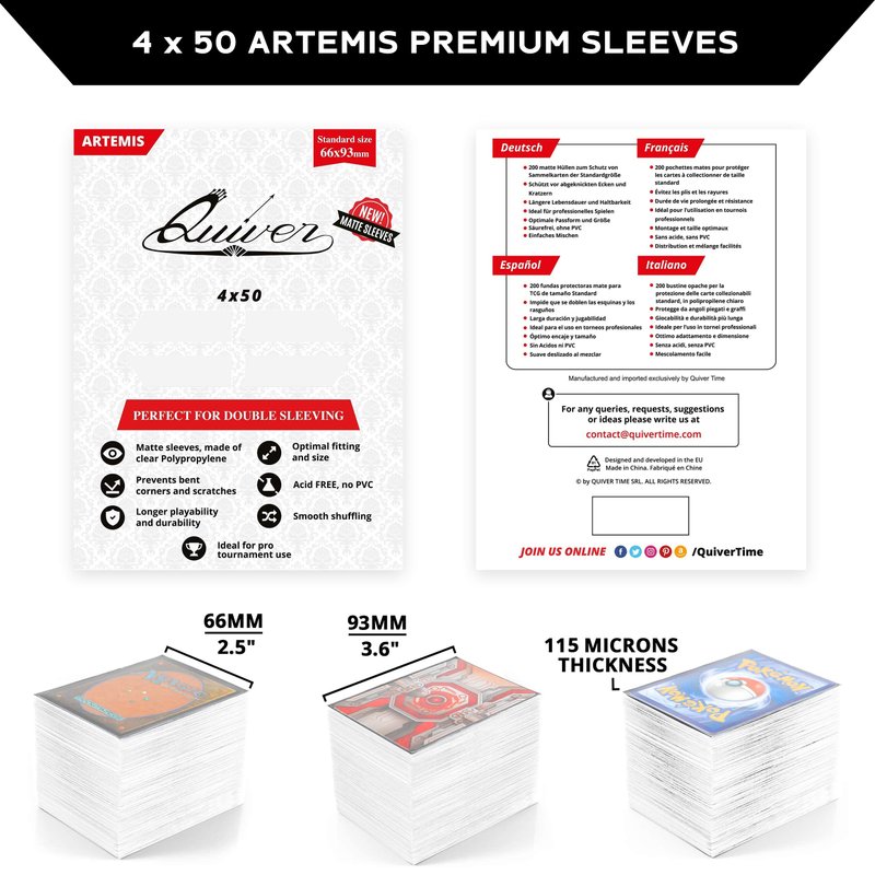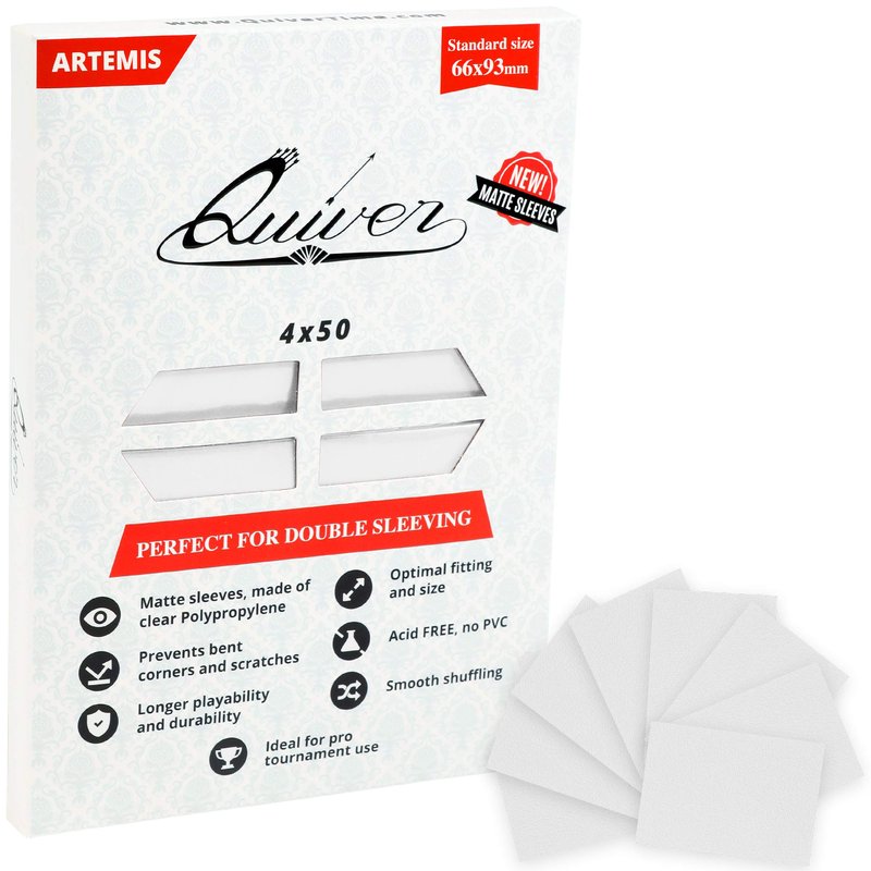 Quiver Time 200 Artemis Standard Size White Card Sleeve - Matte Deck Sleeves - Card Protectors Compatible with Magic: The Gathering (MTG Card Sleeves) & Other Playing Cards (White, 66x93mm)
