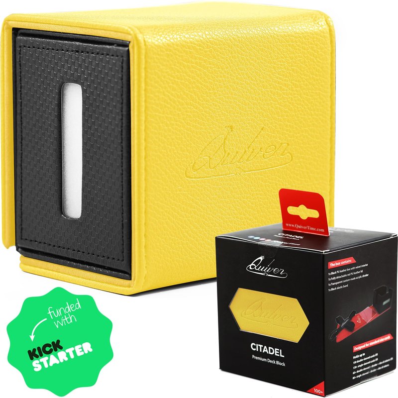 Quiver Time Yellow Citadel Deck Block - 100+ Commander MTG Deck Box for Cards - Card box holder for Cards, Dice and Tokens, Custom Deckbox Divider - Quiver Card Cases Compatible | TCG Card Deck Box