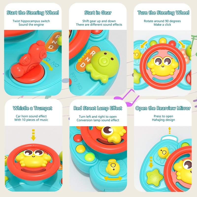 - Portable and Easy to Carry.Toy steering wheel compact and lightweight, perfect for family trips, allowing 6 7 8 9 month old baby toys to play anytime, anywhere and baby boy toys 6-12 months can used in any scene.