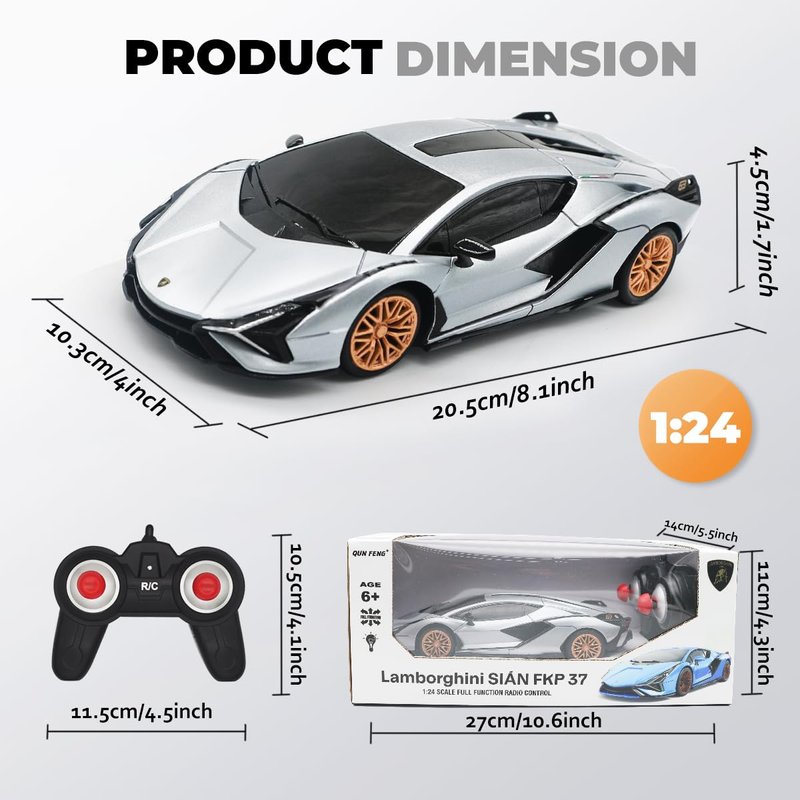- 【OFFICIALLY LICENSED】Our remote control cars get officially licensed by, 1:24 true replica of sian. Small size, 8.1 inch long. A cool remote control car for 5,6 year old boy birthday gift.
