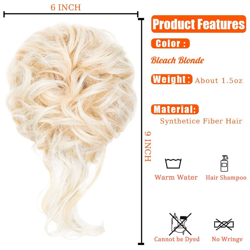 Qunlinta Messy Bun Hair Piece, Long Wavy Tousled Updo Hair Bun Extensions Wavy Hair Wrap Ponytail Hairpieces Hair Scrunchies with Elastic Hair Band for Women Girls -Bleach Blonde