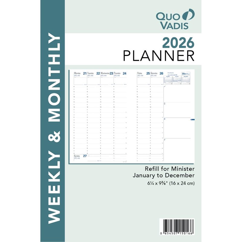 Quo Vadis 2026 Refill for Minister - Weekly/Monthly Planner - 12 Months, Jan. to Dec. - 6 1/4 x 9 3/8" - Time Management Appointment Organizer