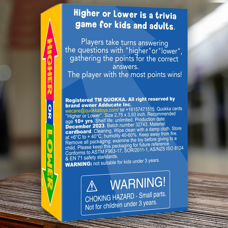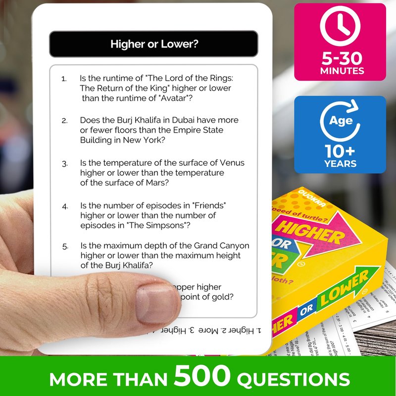 QUOKKA Board Game for Kids 8-12 - Family Card Game for Kids and Adults - Higher or Lower | Guess Fun Questions | Easy to Learn | 2 + Players - Challenge Game for Family Night