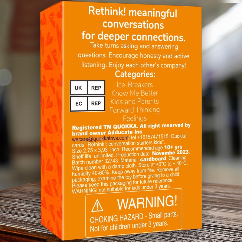 - 5 CONVERSATION THEMES: a variety of conversation cards include Ice-Breaker, Know Me Better, Forward Thinking, Emotions, and Kids and Parents;