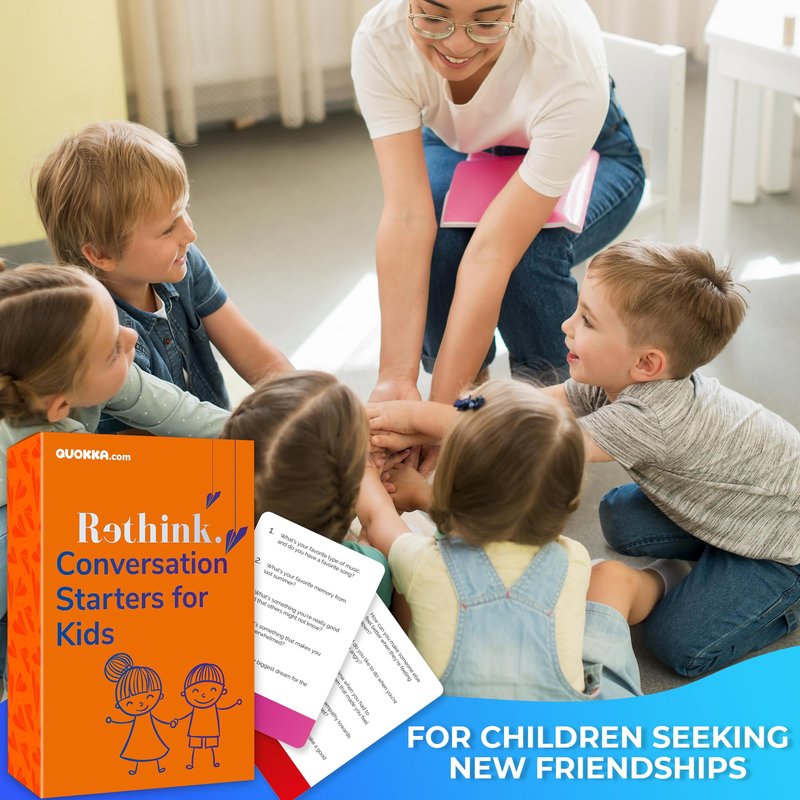 QUOKKA Conversation Cards Game - Kids Edition | 500 Questions | Original Version | Share Thoughts - Fun Talking Board Game for Family Night