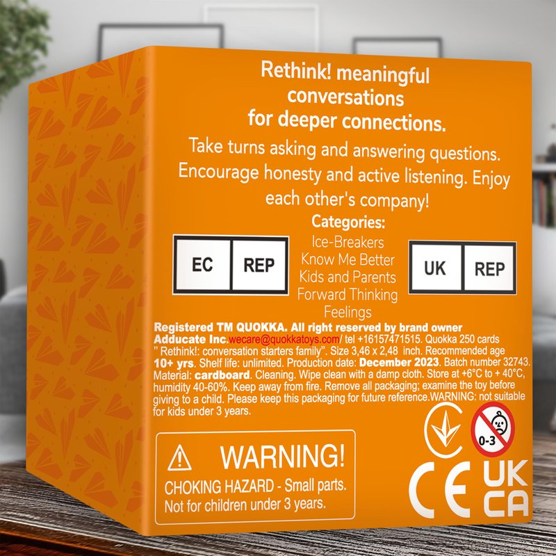 Transform ordinary family moments into extraordinary connections with our Conversation Starters for Families – the ultimate game designed to facilitate laughter, deep conversations, and genuine bonding. This family pack of Cards is not just a game, it's unforgettable memories and fosters a sense of togetherness. Elevate your family gatherings with our Conversation Starters for Families – the game for fostering meaningful connections and laughter. This family pack of Cards is designed to ignite engaging conversations, making every moment together unforgettable. Whether you're planning a family game night, a road trip, or seeking the perfect family Christmas gift, our Cards cater to a broad audience. Engage in friendly competition with "Served Card Game Kids vs Parents" or stimulate conversation with "Table Topics Family." These cards are crafted for versatility, ensuring that every family member, from the littlest to the oldest, can actively participate. Packaging may vary!