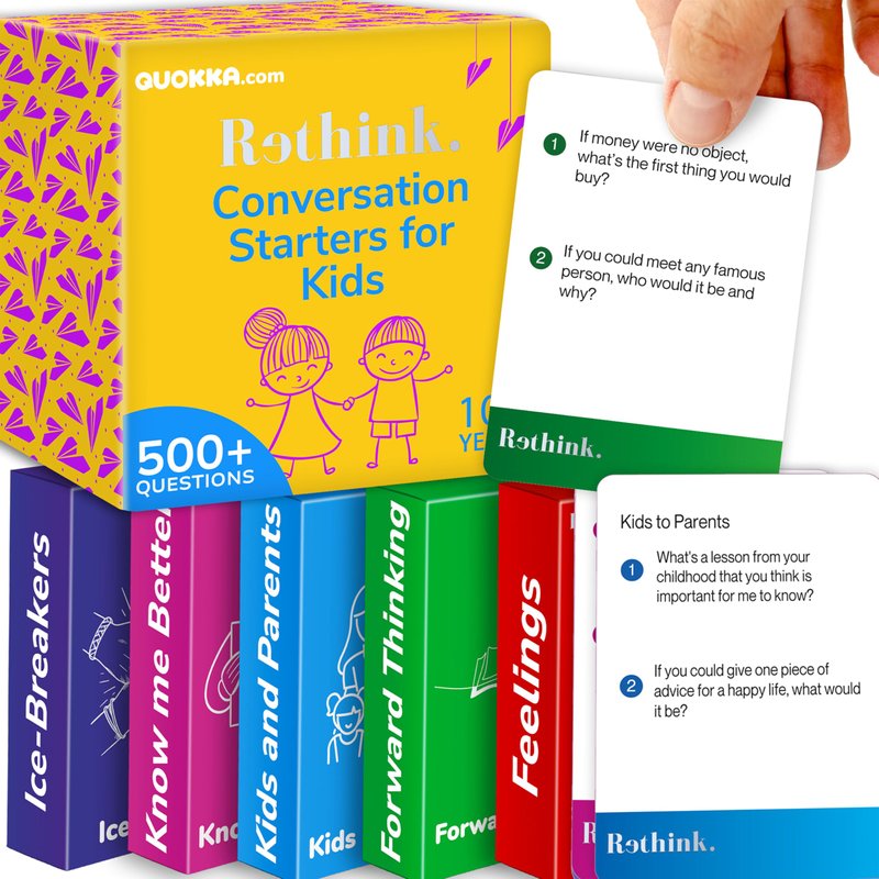 QUOKKA Conversation Cards Game - Kids Edition | 500 Questions | Premium Version | Share Thoughts - Fun Talking Board Game for Family Night