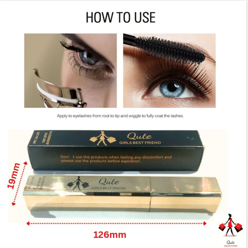 QUTE 4D Silk Fiber Lash Mascara Waterproof,Luxuriously Longer,Thicker,Voluminous Eyelashes,Long-Lasting,Dramatic Extension,Smudge-proof,Hypoallergenic Formula (Black)