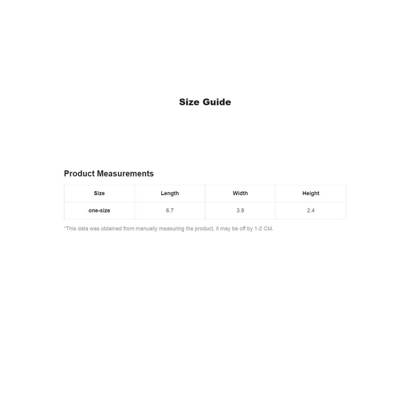 One Size: Length: 6.7," Width: 3.9," Height: 2.4,"