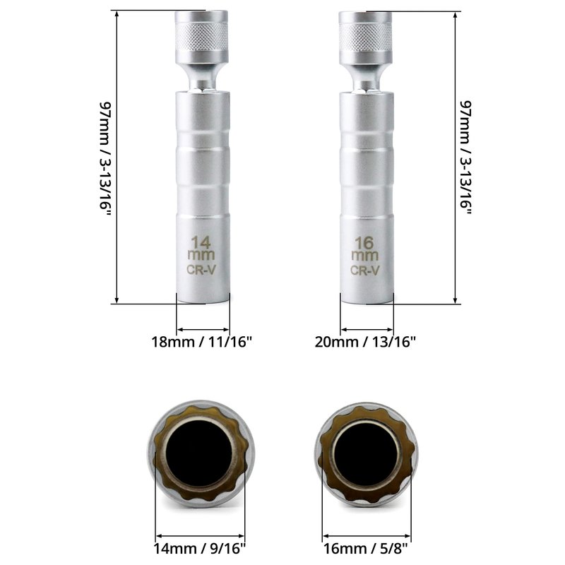 - Package includes: 1 Piece 14mm + 1 Piece 16mm magnetic thin wall swivel spark plug socket.