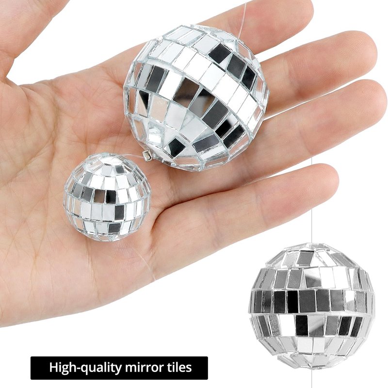 - Versatile Miniature Sizes: The package includes a pack of 8 disco ball ornaments available in 1 inch and 2 inch diameters.