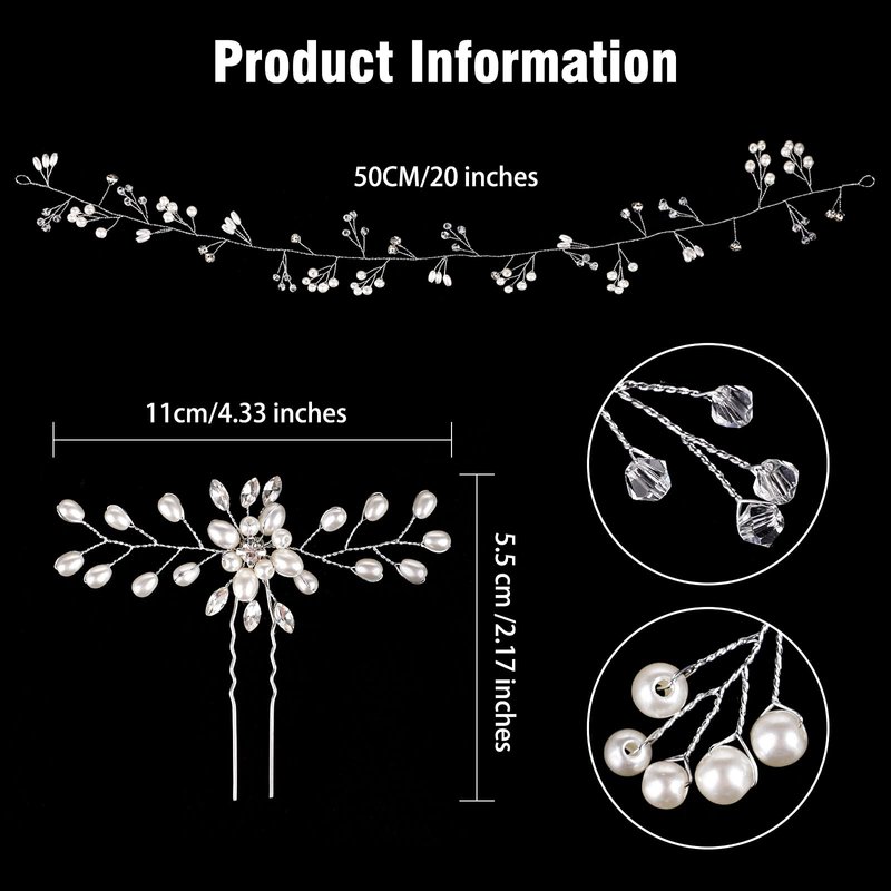 - Size: The Bridal Headband is 50CM/20 inches, long enough to decorate any hairstyle; The Pearl and Crystal Hair Pin is 11 x 5.5 cm / 4.33 x 2.17 inches.