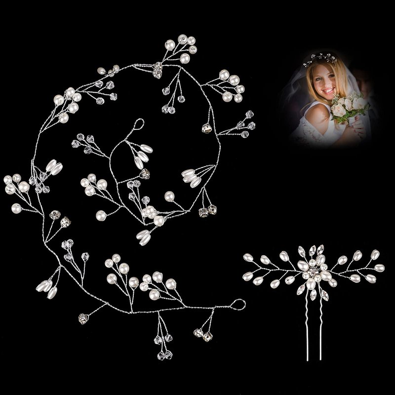 QXUJI Crystal Bridal Headband, Handmade Pearl and Crystal Wedding Headpieces with Hair Pins, Extra Long Bridal Hair Vine, Hair Accessories for Bridesmaid and Flowergirls, 20 InchesMaterial: The Bridal Headband and Hair Pins are made of rhinestones beads, imitation pearls, alloy, and the Bridal Hair Vine is connected by an adjustable cooper wire, which is very sturdy, nice for classic or vintage weddings.Size: The Bridal Headband is 50CM/20 inches, long enough to decorate any hairstyle; The Pearl and Crystal Hair Pin is 11 x 5.5 cm / 4.33 x 2.17 inches.Unique Design: The Handmade Hair Accessories are designed by rhinestones and pearls, which makes your hair styles very eye-catching and sparkling, and you will attract everyone's eyes and become a shining star.Wide Application: The Handmade Pearl and Crystal Headband and Hair Pins are nice hair decorations for Bridals, Bridemaids, Flowergirls, during Daily Wearing, Wedding, Party, Prom, Christmas, Dances, Engagement, Anniversary, or other special occasions. Also, they can be regareded as sweet presents for your friends or family members.Package Included:1PC X Crystal and Pearl Bridal Headband1PC X Hair PinAfter Sales Service: If the Crystal Bridal Headband and Hair Pins you received are damaged or missed quantity, please email us.