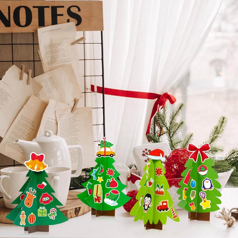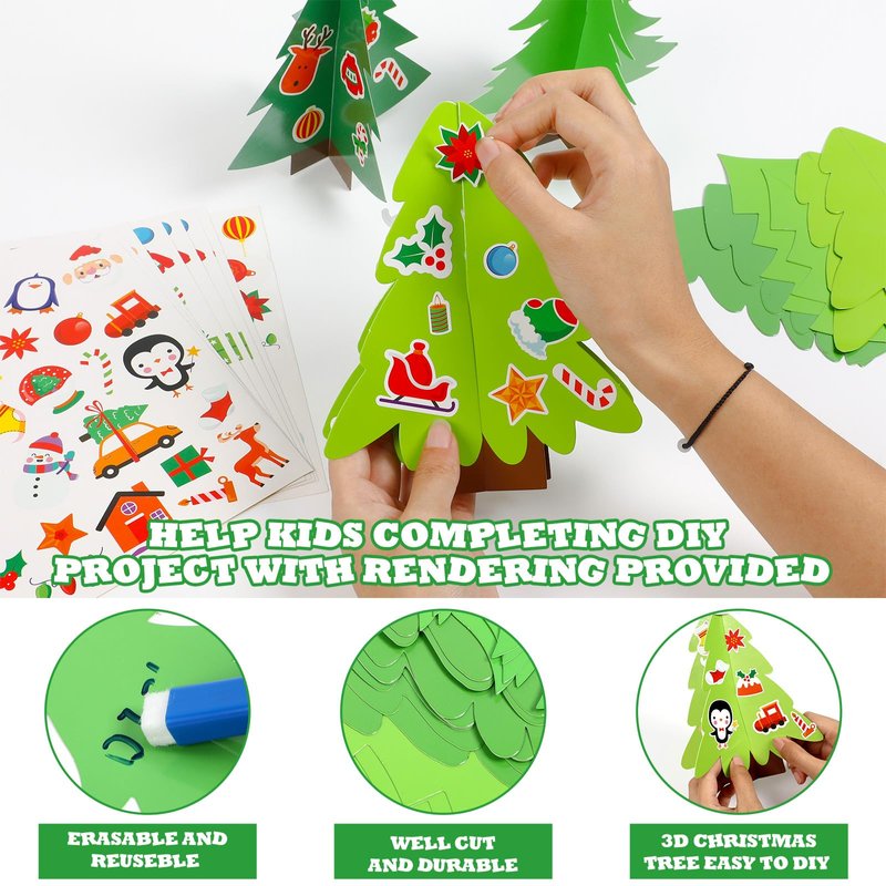 - 【Easy to Use】 The operation of Christmas tree DIY is also very simple for children. Stick sticker ornaments on basic cards to create your own Christmas tree ornament that look great to hang on your tree or standing on the table, Christmas craft kit ornaments hanging art can also be used as a party game activity to get everyone everyone enjoy the fun of crafting.