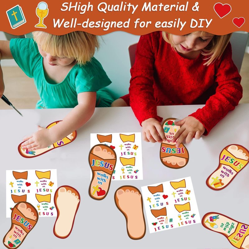 - 【rainbowular Craft for Kids】Try some fresh Jesus religious craft games with your kids! Just encourage kids to make there own Jesus slippers with these simple and fun card and sticker activities.These Jesus walks with us religious craft kits can help to create a jesus atmosphere and joy.