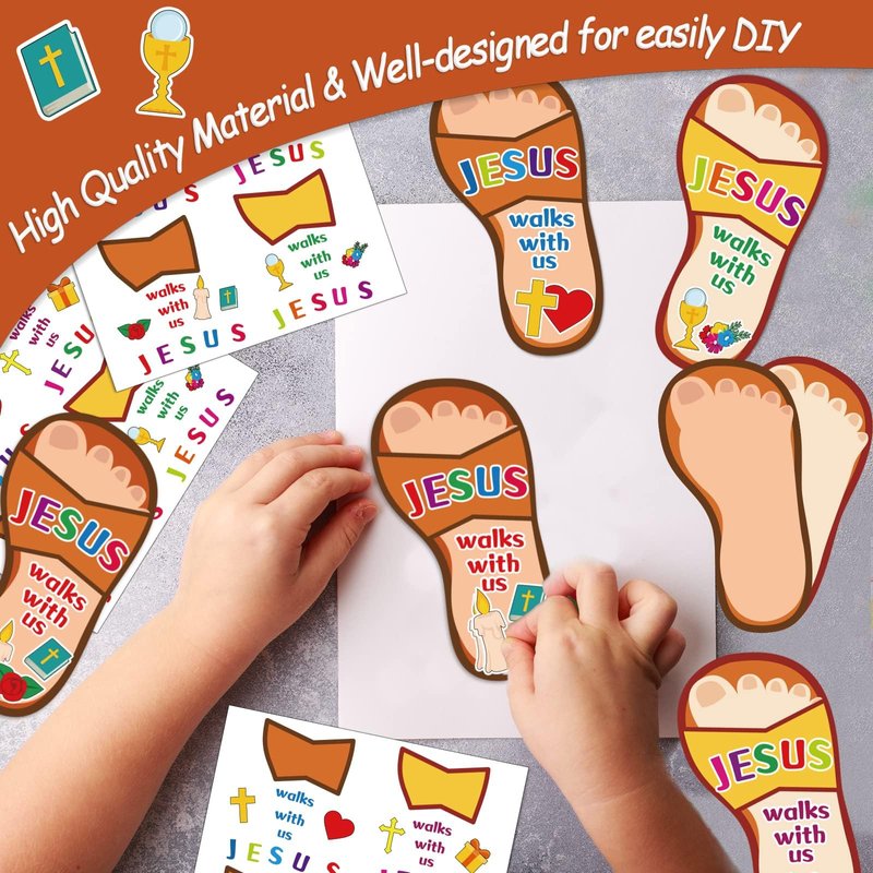 - 【High-quality Paper Material】Our Jesus walks with us slipper religious DIY craft kits are colourful printed for kids, these cards and stickers are made of laminated cards and stickers, making them tear-resistant, water-proof, no smell, and harmless to children. It’s a good substitute for foam crafts.
