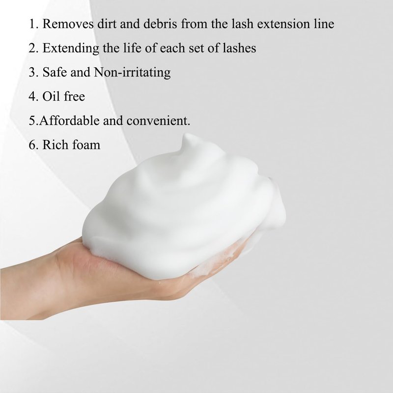 - ✅ lash shampoo -Friendly Foam – Our lash shampoo for lash extensions foam is light, fluffy and has a rich lather, creamy texture, a pleasant, mild, and natural aroma, and is easy to apply and spread around the eye area.