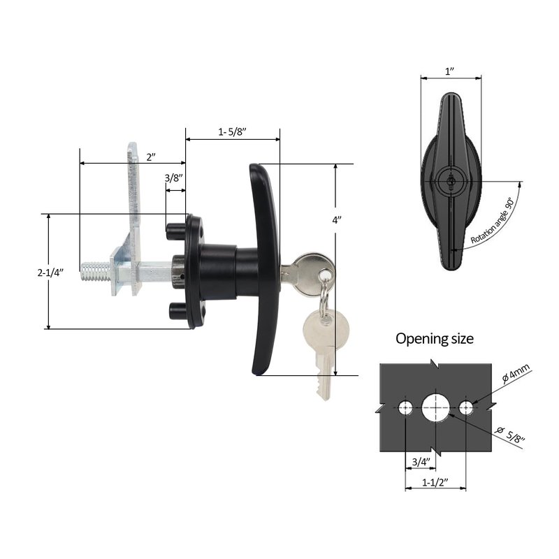 This T-Handle Lock kit is well-designed, compact, and has a clean, attractive look.The T-handle RV door lock is very easy to install. Mounting screws are included. The surface is smooth and bright, and feels comfortable in your hand. The keyed alike black RV garage door lock is easy to lock and unlock. Easy to lock and unlock. Recommended for anyone who needs a replacement T-handle lock.