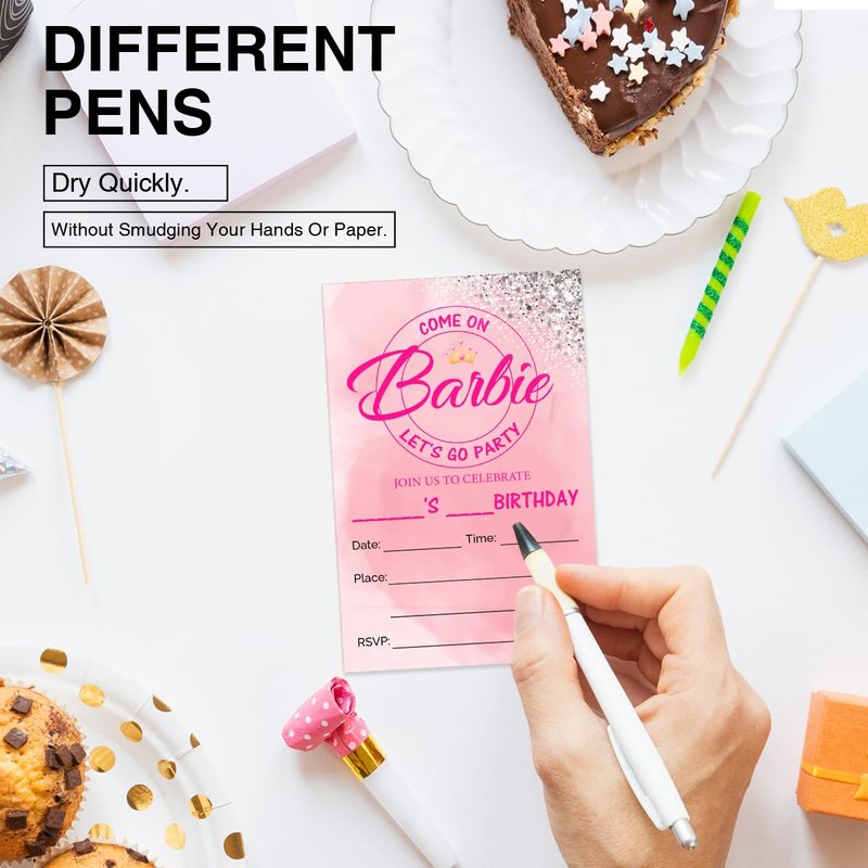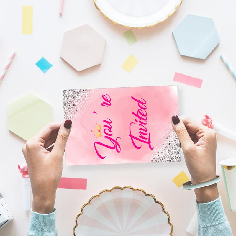 QZJ Pink Girl Birthday Party Invitations Supplies with Envelopes Set of 20 Pink Girls Birthday Party Invites Fill in Blank, Double Sided