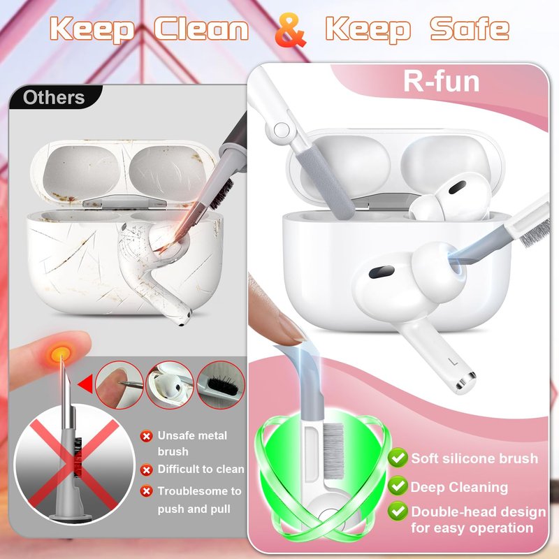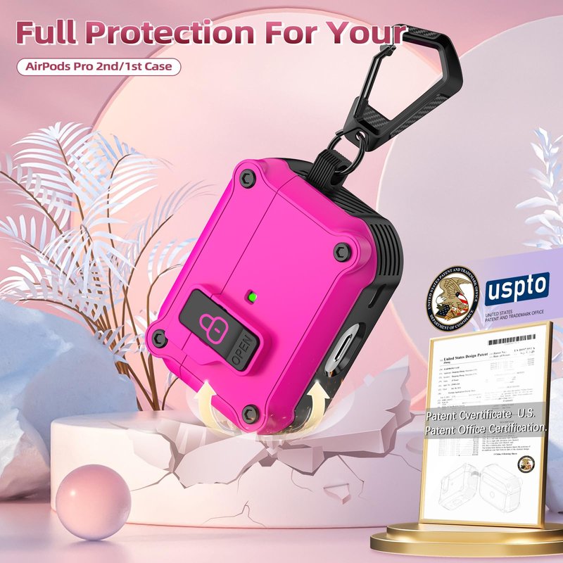 R-fun Compatible with AirPods Pro 2nd Generation 2023(USB-C),2022(Lightning Cable),1st Gen 2019 Charging Case, Full Drop Protection Auto Pop-Up Lid Design with Cleaner Kit,Black/Rose Pink