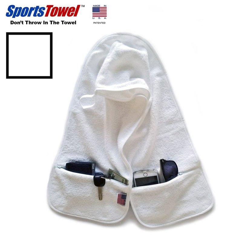 R J Hall Sports Towel 2 Zipper Pockets, 100% Ring-Spun Cotton, Holds Cell Phone, Keys, Wallet, ID, Earbuds for Workouts and Sports (white)