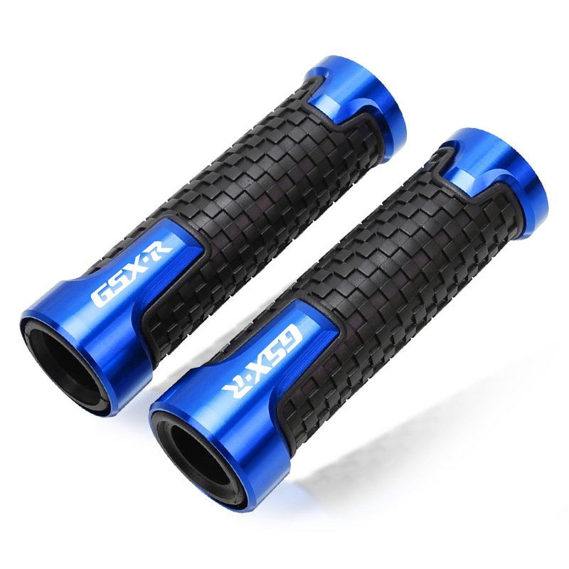 R QIANKONG 7/8" 22mm Motorcycle Handlebar Grips Compatible with GSXR 125 250 300 600 750 1000 GSX-R CNC Aluminum Rubber Handle Grips Motorcycle Fits(Blue)