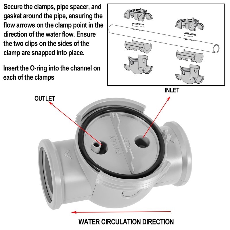 - MATERIAL: The saddle clamp replacement parts are made of quality material, treated with anti-corrosion and high-temperature resistance. Care is needed with installation, to assure the clamp is correctly sealed and watertight against pressure from the pool's pump.