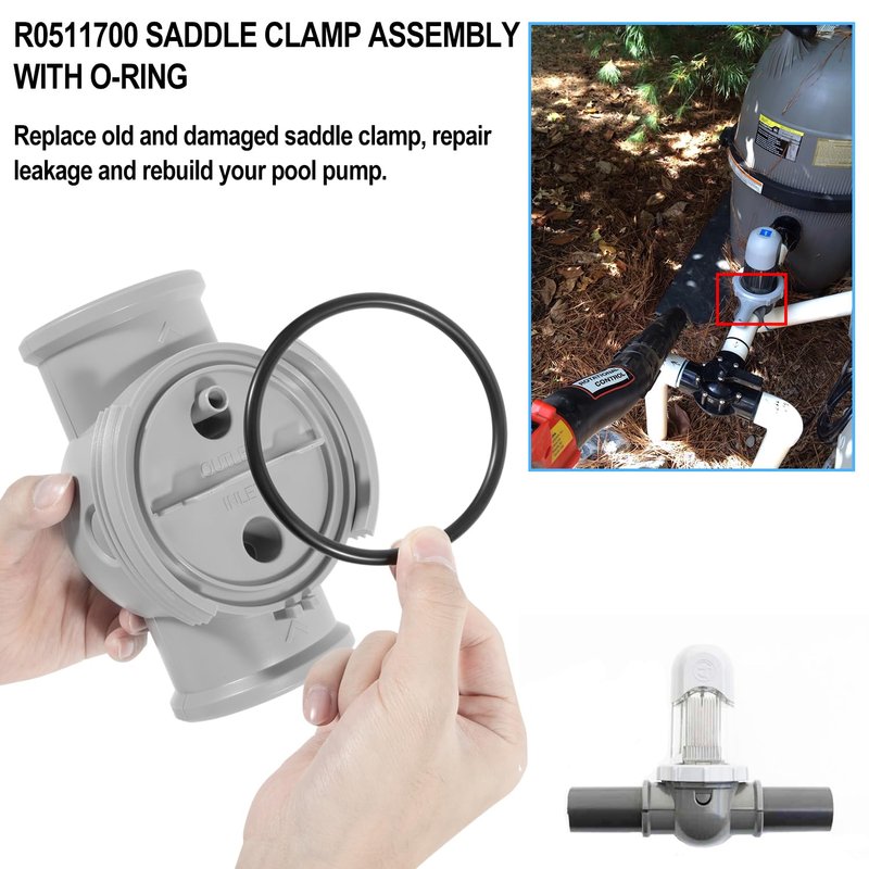 - FUNCTION: This R0511700 saddle clamp assy replacement part is used to replace old and damaged saddle clamp, repair leakage and rebuild your pool pump.