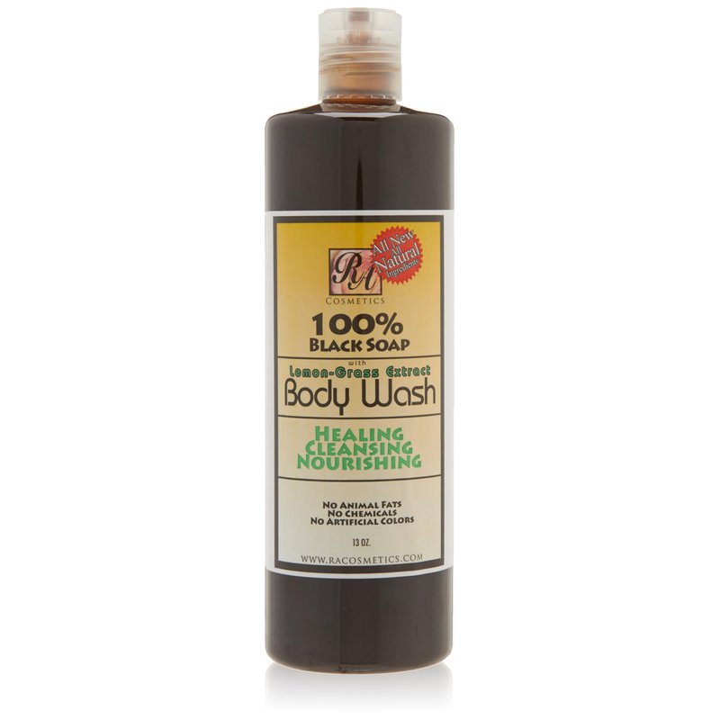 RA Cosmetics 100% African Liquid Black Soap Body Wash Lemongrass Scent 13 Fl Oz