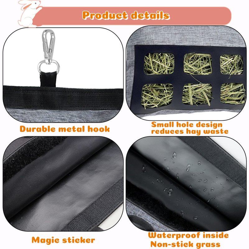 Rabbit Hay Feeder Bag, Upgraded Bunny Guinea Pig Hay Feeder, 600D Oxford Fabric Hay Holder for Small Animal Rabbit Guinea Pig Chinchilla Cage