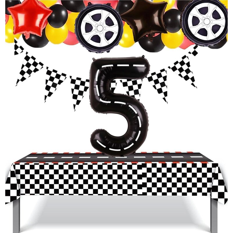 - The race car 5th birthday balloon set, was designed with elements of birthday and race/sports, is cool car theme birthday party supplies for boys and men, full of fun.