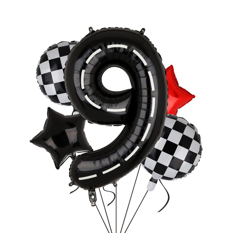 - Package/Size: 1 pcs 40 inch racecar number balloon 9,2 pcs black and white chequered balloon,2 pcs star balloon,1 pcs ribbon.