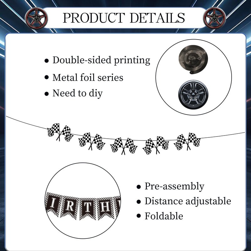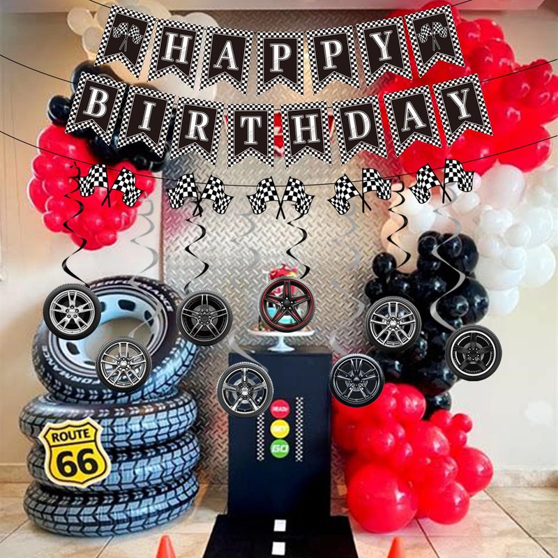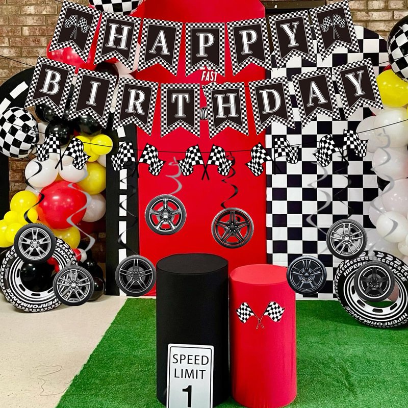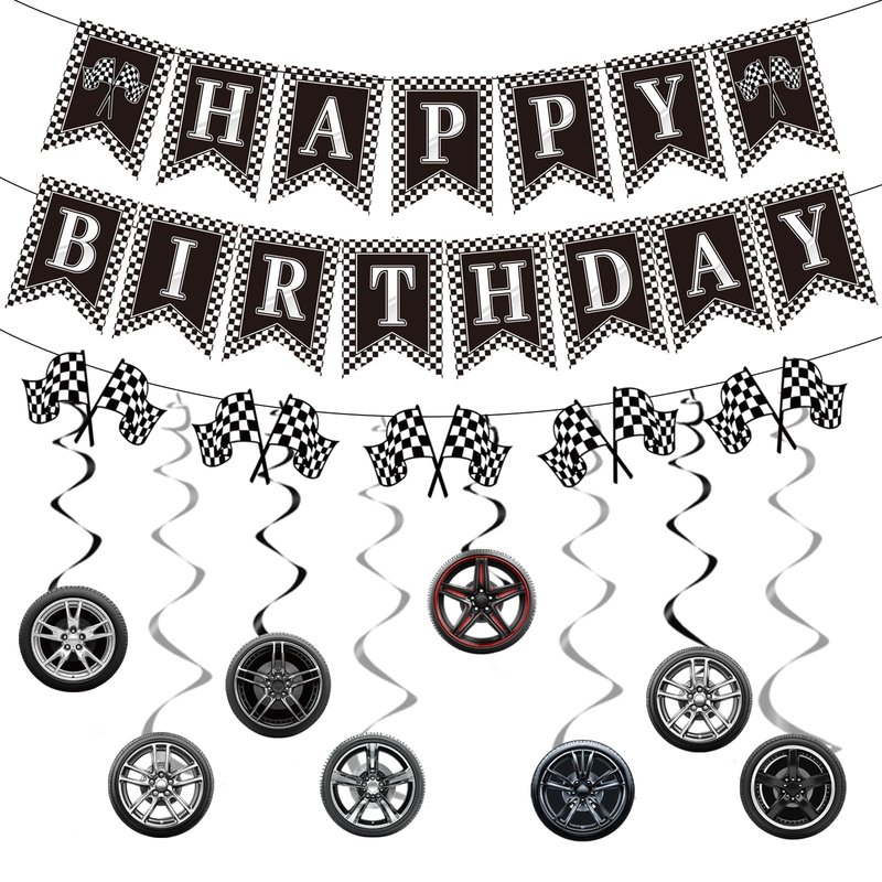 - Set Includes: You will get the racing theme birthday party decorations set, including 3 pieces of racing style happy birthday banners and 8 pieces of racing theme hanging swirls, total 11 pieces! The racing car birthday party decorations will create a passionate birthday party atmosphere and can help you create a memorable party!