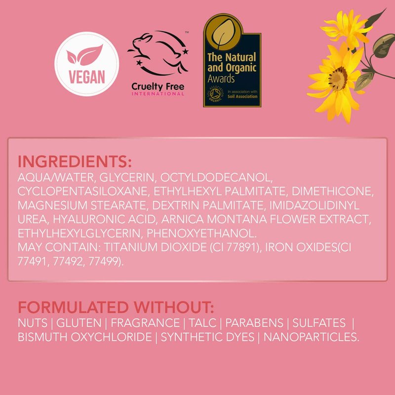 - ARNICA EXTRACT - Infused with Arnica Extract, which contains several compounds that are great for the skin: flavonoids, volatile oils, sesquiterpene lactones, carbonic acid, and coumarins. These compounds are thought to help reduce inflammation and redness by soothing and cleansing the skin of impurities