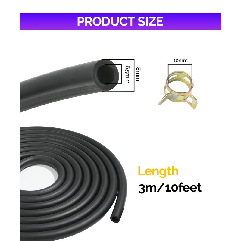 - [High Qality Mterial] The fuel pipe is made of high-quality materials, which have oil resistance, heat resistance, and cold resistance, as well as ethanol resistance and durability. The clamp is made of high-quality steel, sturdy and durable, with a long service life.