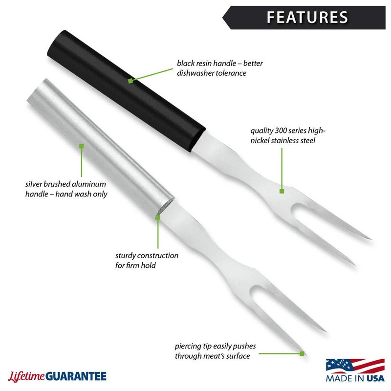 Rada Cutlery Carving Fork Stainless Steel Tine Steel Resin Made in USA, 9-1/2 Inches, Black Handle