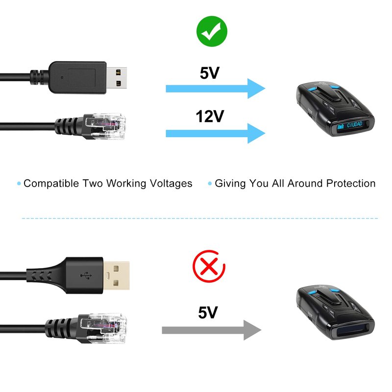 - ★【Patented Technology】Our radar detector cable has a built-in patented chip that supports all 5V and 12V on-board USB, and the interface output is compatible with the startup voltage of most radar detectors. When the cable is connected to various USB interfaces, the radar detector can be turned on stably.
