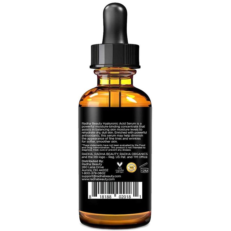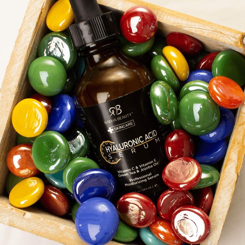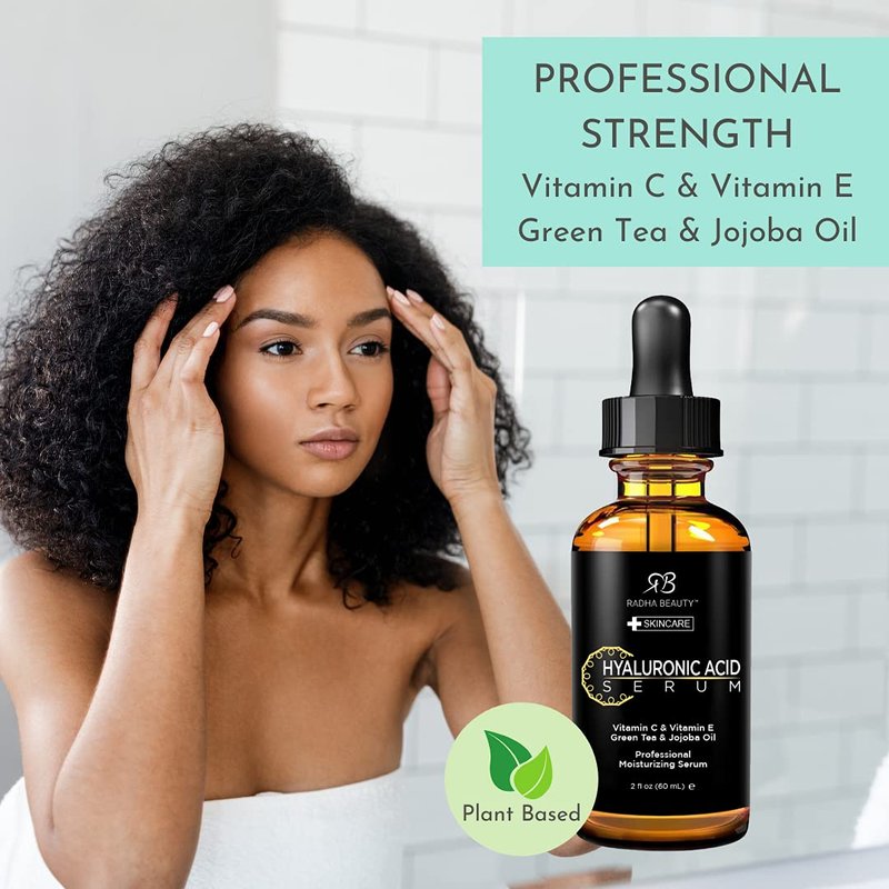 Radha Beauty Hyaluronic Acid Serum for Skin, 2 fl. oz - Infused with Vitamin C, Vitamin E, Green Tea & Jojoba Oil, Intensive Moisture and Hydration for Anti-Aging, Wrinkles, and Fine Lines