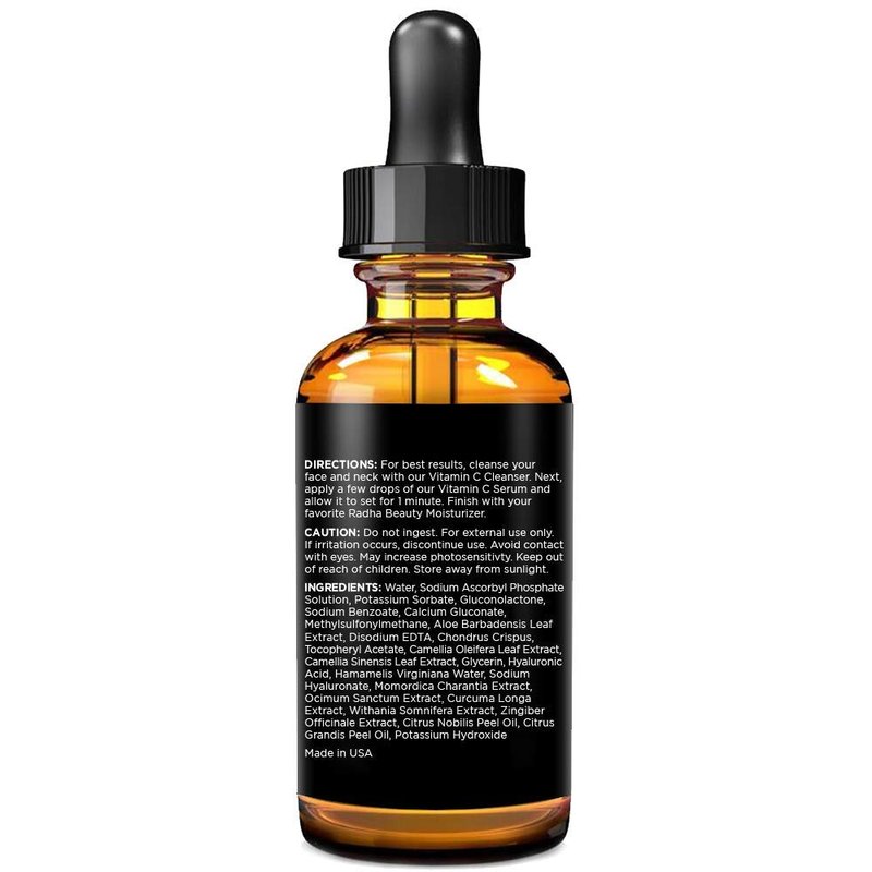 Radha Beauty Natural Vitamin C Serum 2oz, Vitamin C, Vitamin E, Hyaluronic Acid and Aloe, Facial Serum for Anti-Aging Wrinkles, Dark Spots, Fine Lines