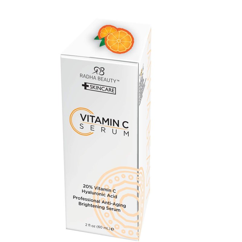 With our new improved formula, Radha Beauty Vitamin C Serum is thin and highly effective. It can help fade sun spots & discoloration, refine skin texture, reduce wrinkle formation, and minimize existing wrinkles. It also has a high concentrated base of pure vegan hyaluronic acid to plump skin cells and protect and restore. Our 20% Vitamin C Serum delivers powerful antioxidants to brighten and enhance collagen production to reduce fine lines & wrinkles for radiant, youthful skin.