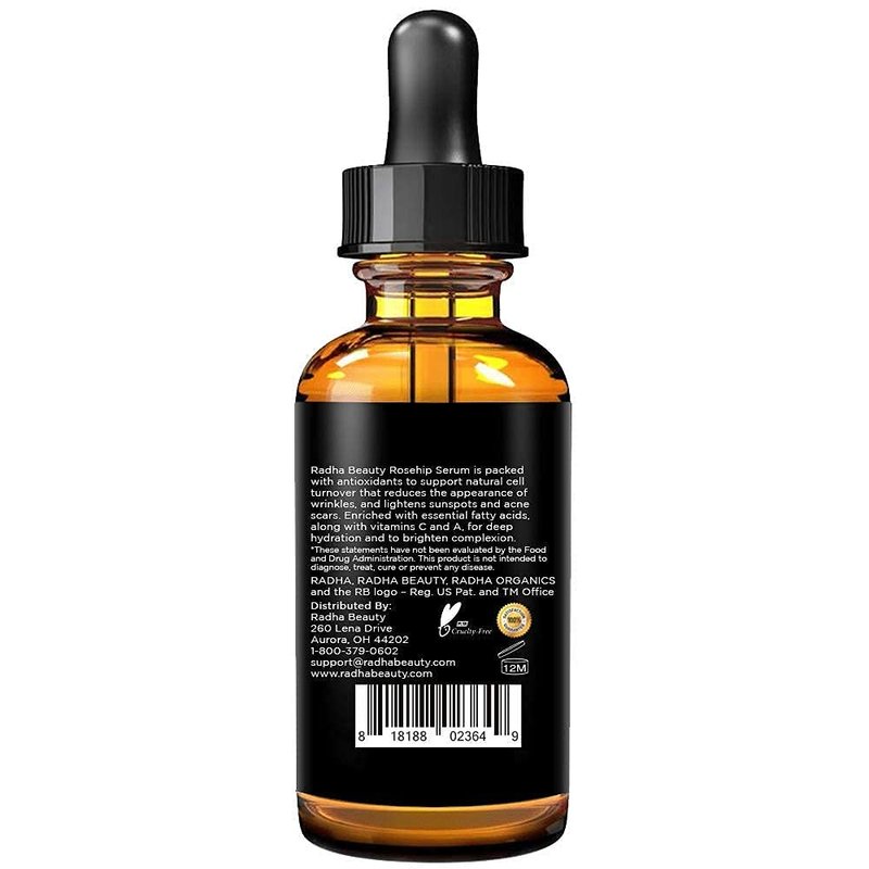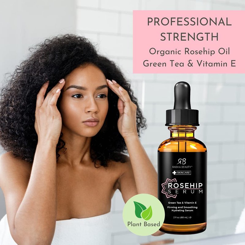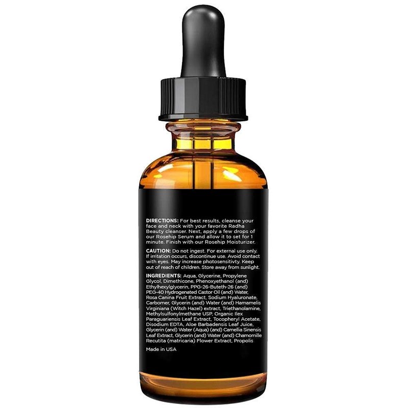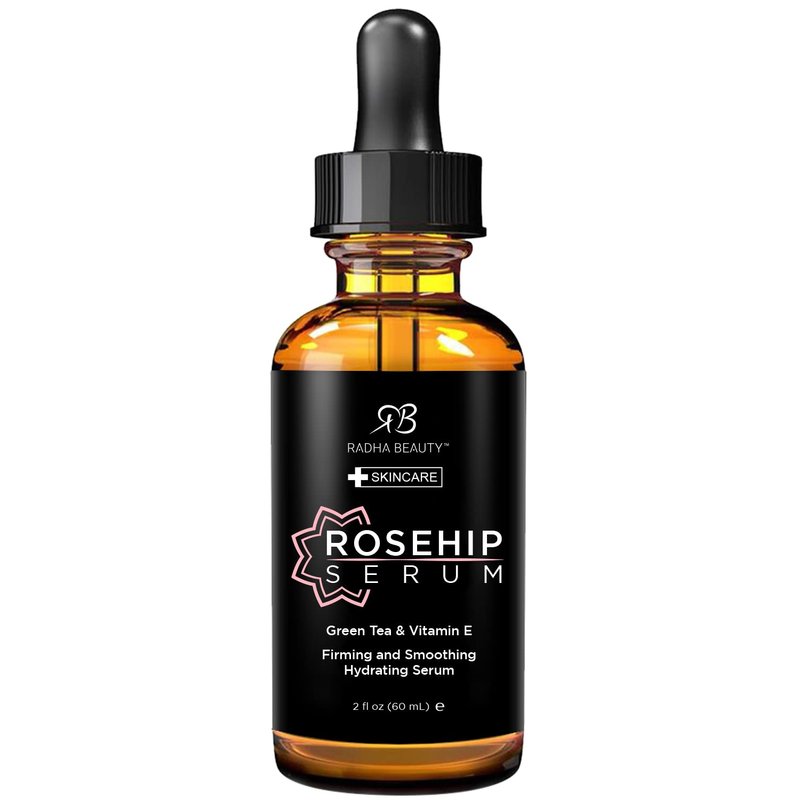Radha Beauty Premium 2oz Rosehip Facial Serum with Aloe, Green Tea, and Witch Hazel - Natural Anti-Aging Skincare Solution