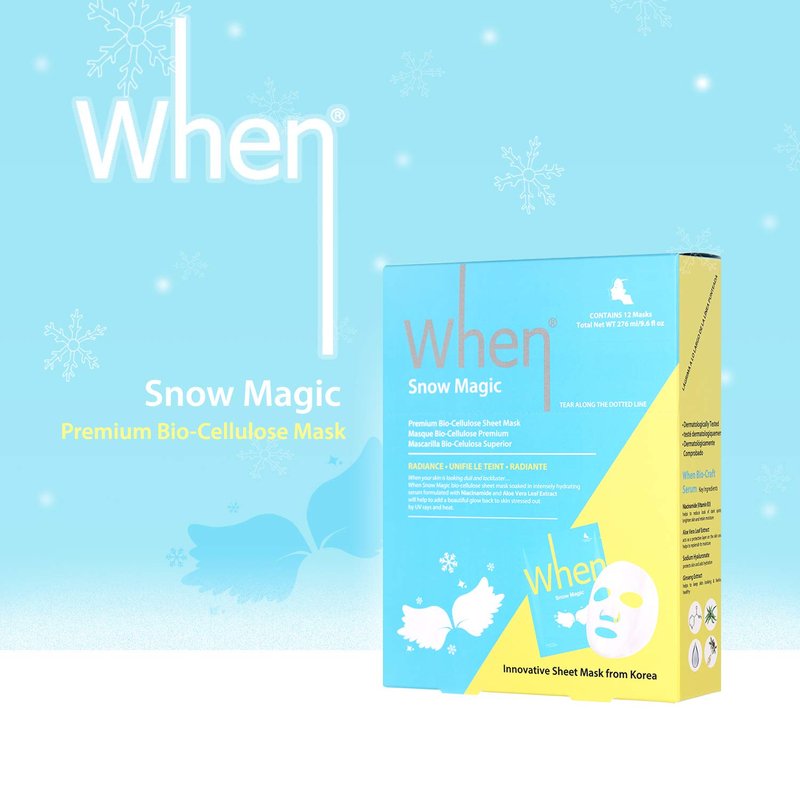 Radiance Bio-Cellulose Facial Sheet Mask - When Beauty Snow Magic Face Premium Korean Skincare Fine Line Wrinkles Reduce Intensive Hydration Soothing Protection (12 pcs set)