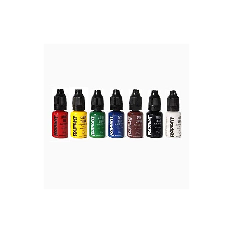 RADIANT COLORS Artists Select 7 Color Tattoo Ink Set 1/2oz Bottles Kit Pigment